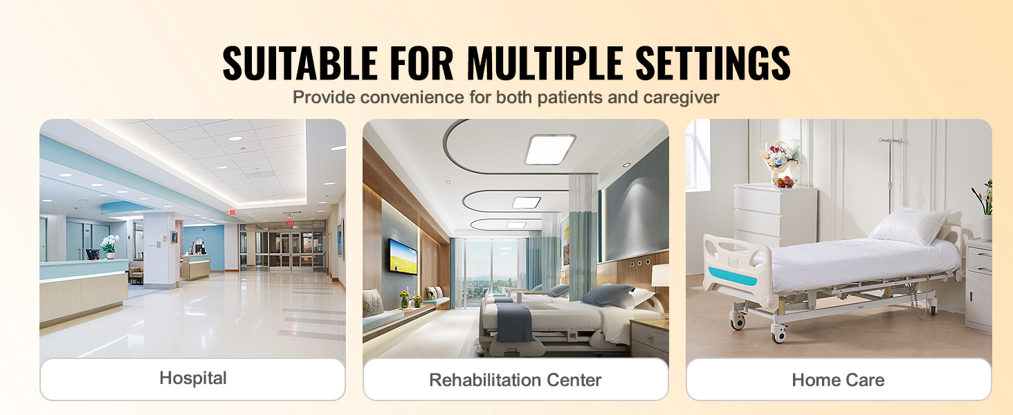 - Versatile Application: Our 3-function full electric hospital bed is designed to fit seamlessly into various settings, including hospitals, rehabilitation centers, and home care environments. Whether you're undergoing rehabilitation treatment in a medical facility or need long-term care at home, this bed is your perfect companion.